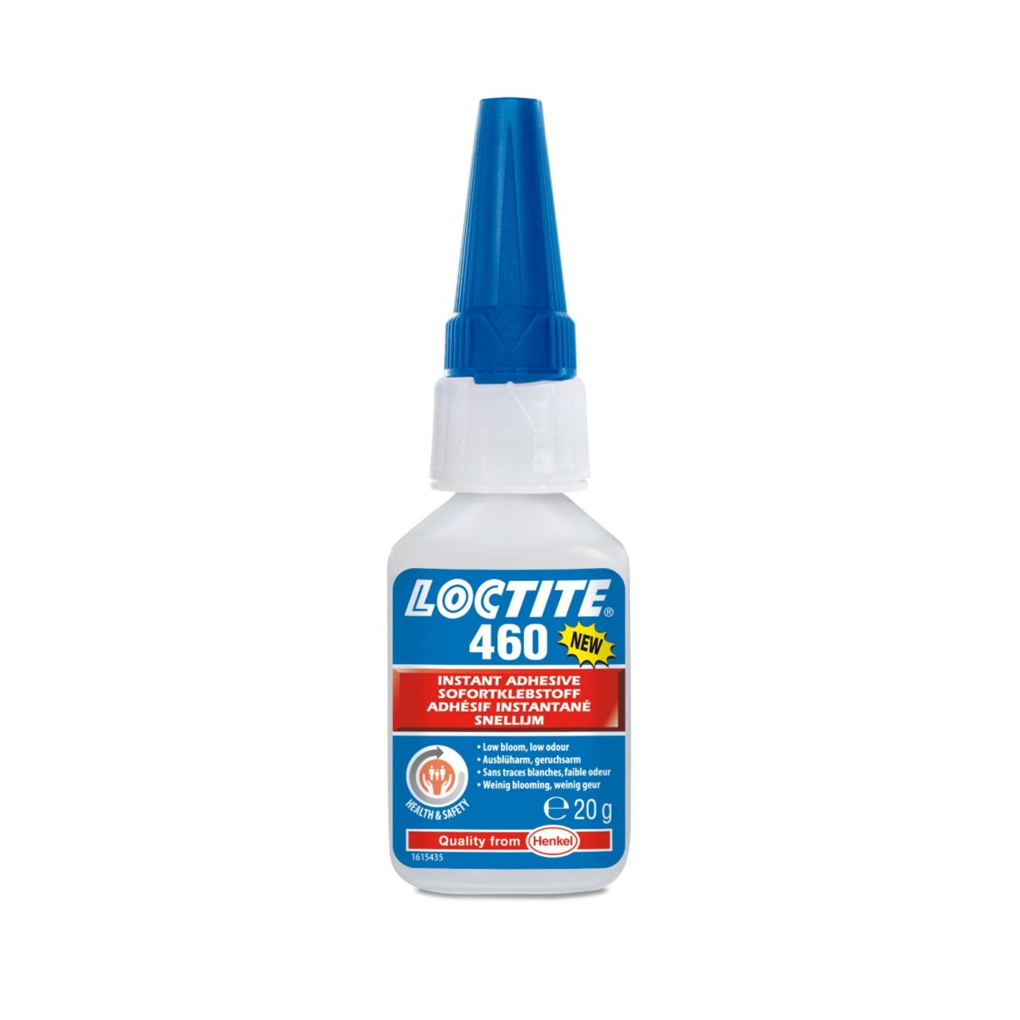 Trenutno lepilo LOCTITE 460 brez barve odlikujejo lastnosti nizkega megljenja, blagega vonja, nizke viskoznosti in hitrega časa fiksiranja (5-20 sekund). Uporabljamo ga pri lepljenju, kjer se zahteva lepo oblikovan spoj s čim manjšim megljenjem. Z njim lepimo porozne materiale, usnje, pluto, les, papir in blago. Temperaturno območje njegove uporabe je od –40 do +80 °C.