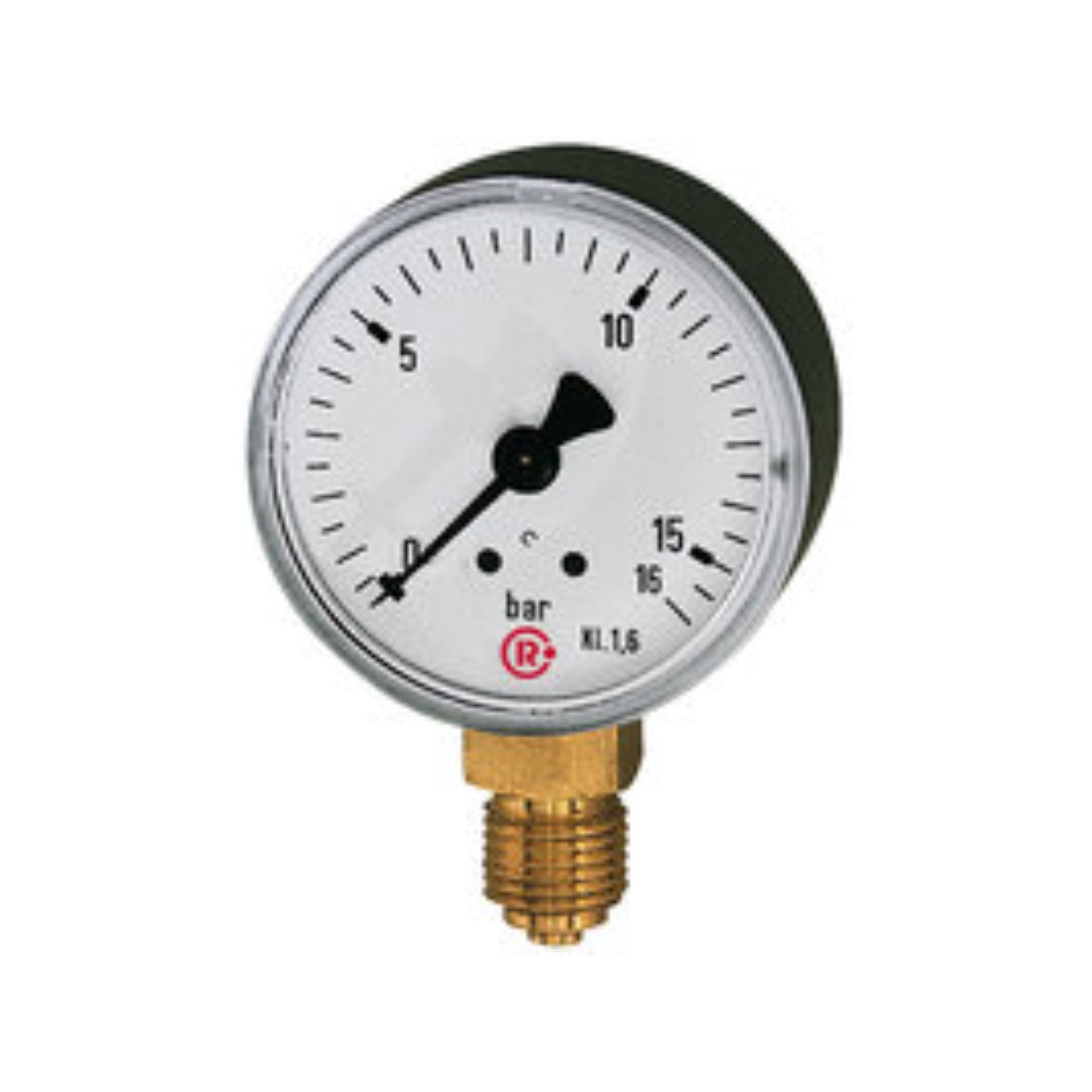 Reliable Technical Partner for Industrial Maintenance and Mechanical ComponentsProductsPneumaticsPneumatic gaugesPneumatic gaugesStandard pressure gauge, Single scale bar, Connection radial bottom, G 1/4, Goods class 1.6, Measurement range -1 / +3 bar, Ø 63 [6304-K]