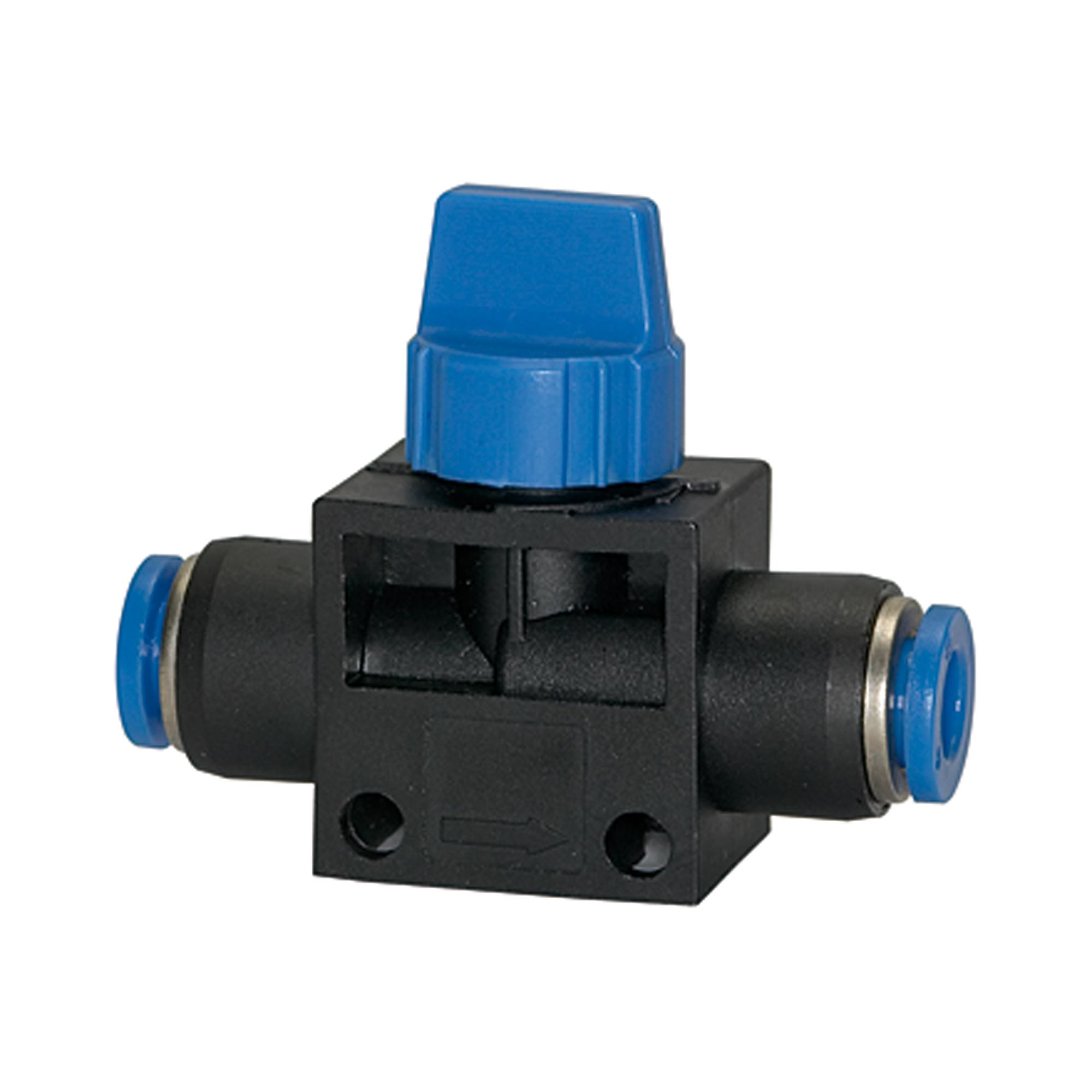 Stop valve with plug connector "blue series", for 12mm hose, 1,5-15bar [190.012]